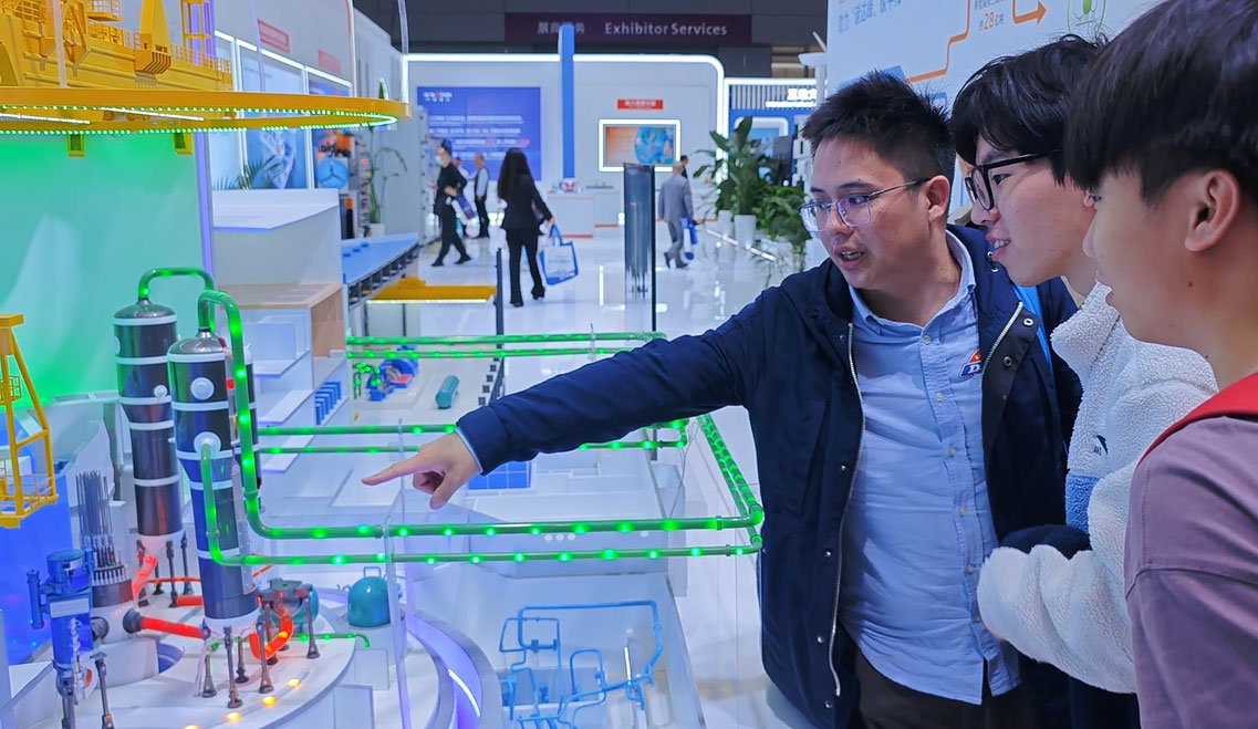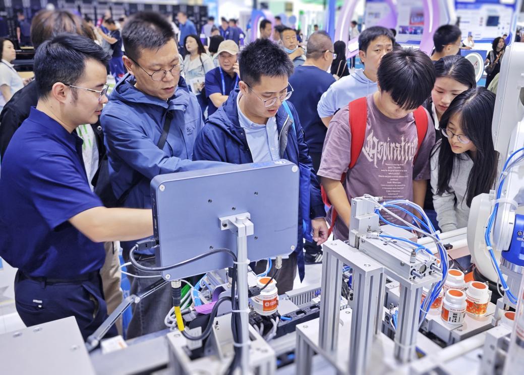 在智能制造展区,产品讲解员为师生们详细讲解了各类技术产品的创新点与应用场景。随行专任教师段枭炜、杨相宇结合展品,现场为学生补充讲解相关理论知识,引导大家近距离观察、触摸模型与设备,让课本知识“跃然眼前”。